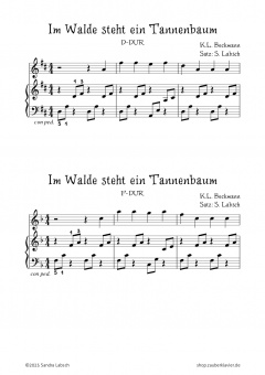 Walde steht ein Tannenbaum" PDF: 978-3-96404-072-5 Umfang: Klavier-Solo-Satz (1 Seite) & Klavier-Begleitung für Stimme oder Soloinstrument in 4 Tonarten (je 1 Seite)
