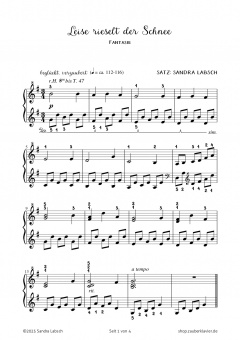 Die mittelschwere Zauberklavier-Version von "Leise rieselt der Schnee" für fortgeschrittene Klavierspieler unterscheidet sich durch ihre Länge, fantasievolle Form und zeitgemäße Harmonik von vielen anderen Bearbeitungen des traditionellen Weihnachtsliedes.